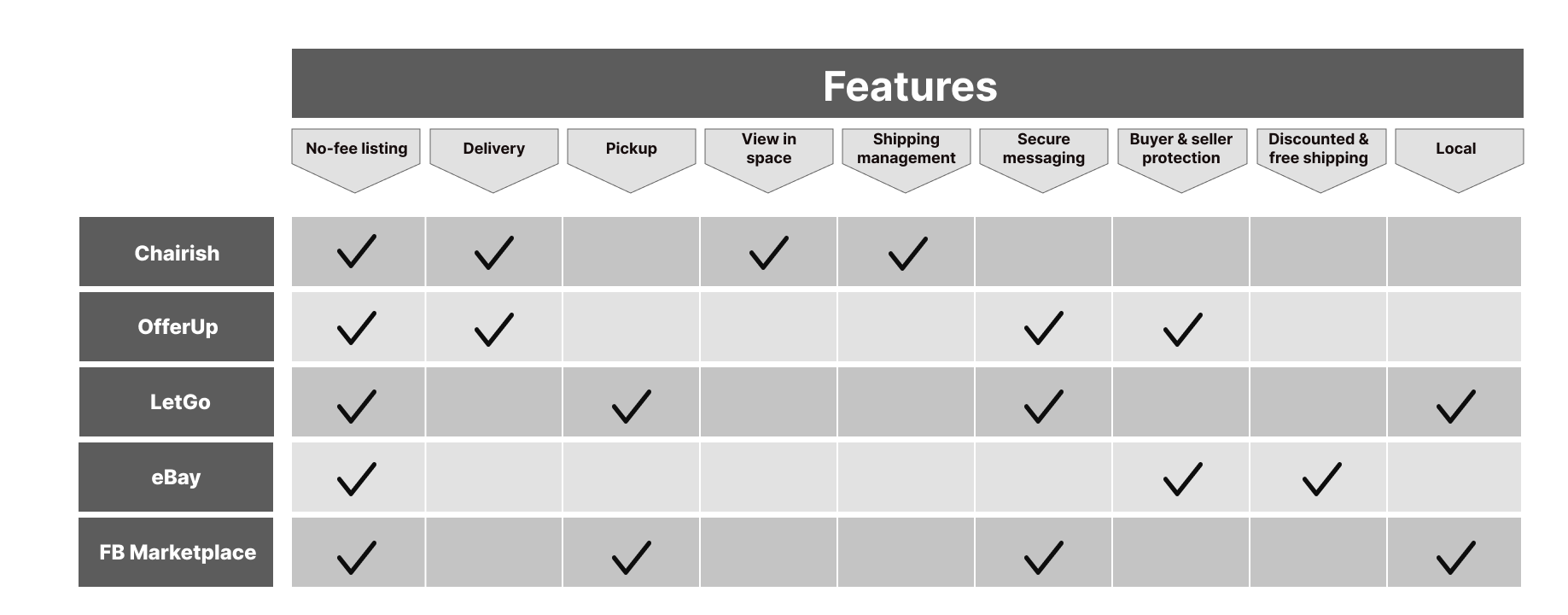 I then conducted semi-structured interviews with my old college friends and current UC Berkeley students. I also did a competitor analysis with some local secondhand furniture buying and selling apps to understand the existing strategies for buying/selling secondhand furniture.