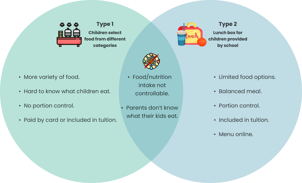 There are two main catering systems in most U.S. schools. Each has its pros and cons. However, they share something in common: Parents don’t know what food their kid(s) are eating at school, and no one can ensure that the right amount of food and nutrition is consumed every day. If parents want to find out what food was provided, they need to either call the school cafeteria or go to the school website (if any) to find out.