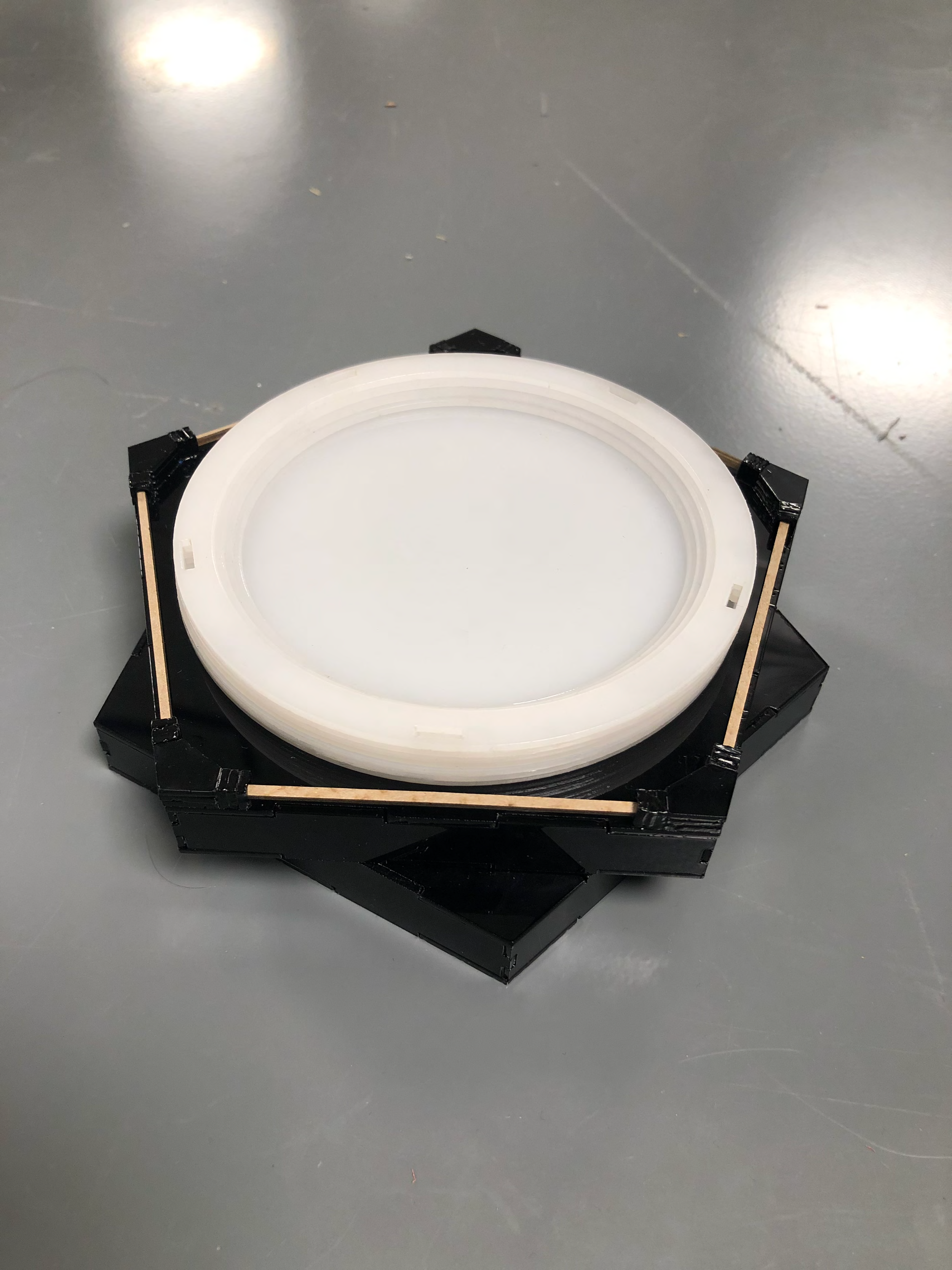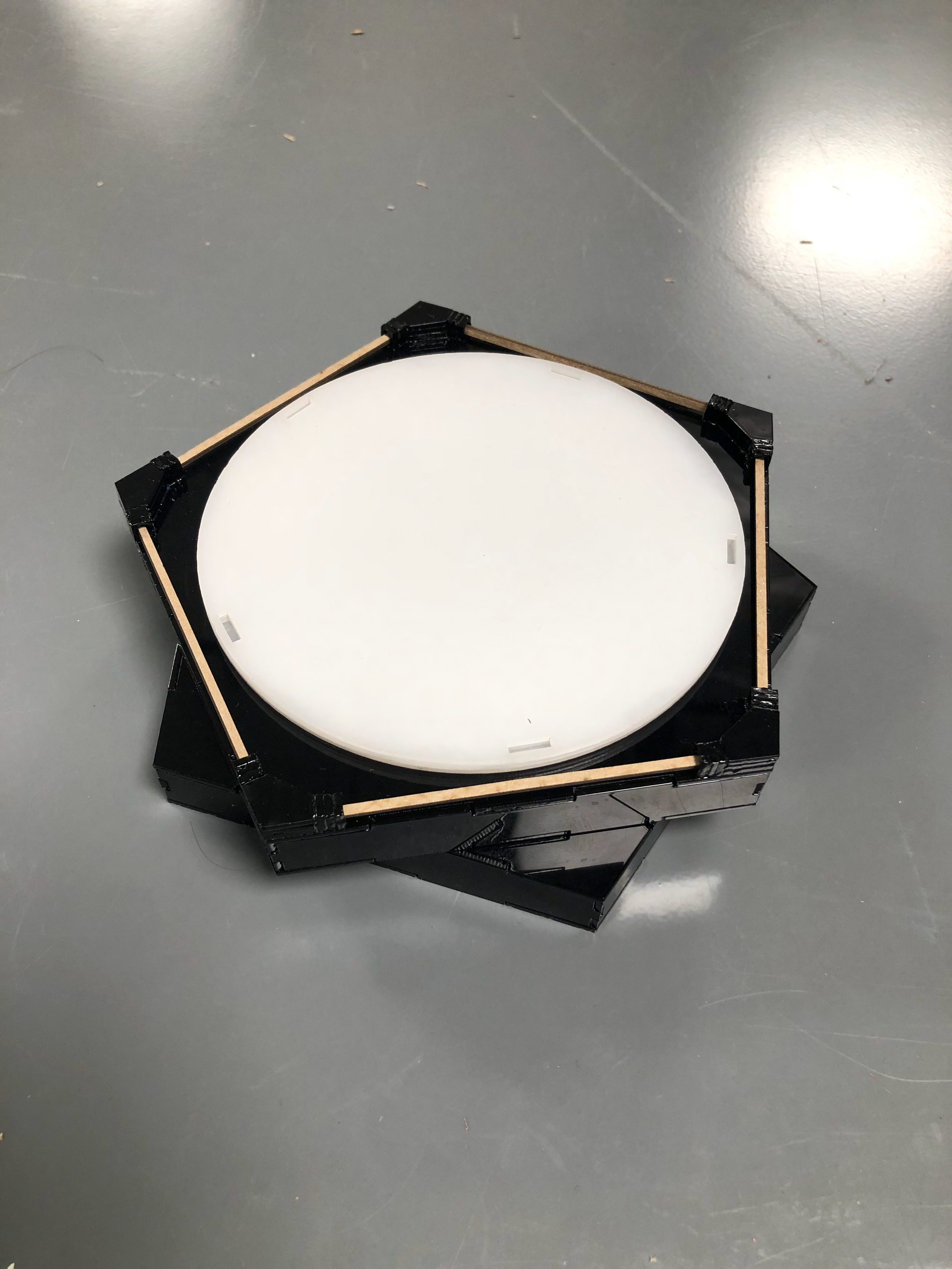 Improve the opening mechanism. Currently, I've used five cardboard sticks to connect the panels to the base of the sake holder, enabling it to open by twisting the base.