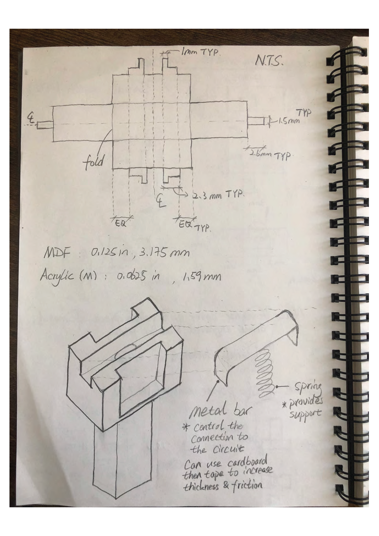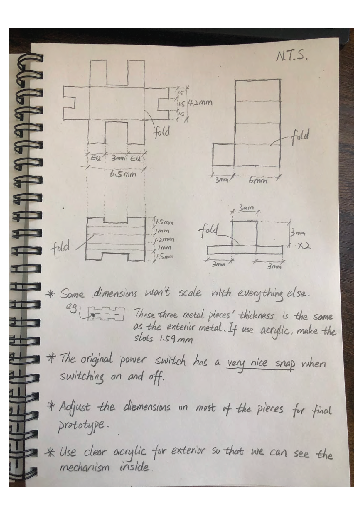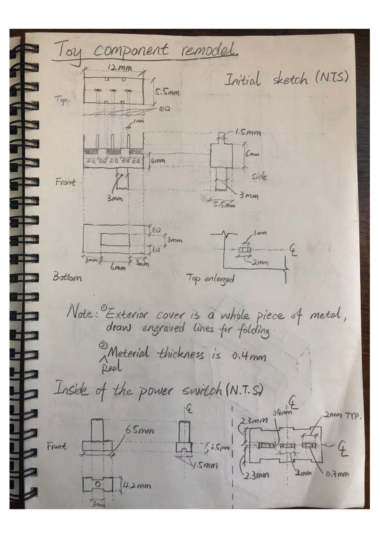 For the reassembling part, I picked the power switch — one of the smallest parts in this toy car that has some other things inside of it. I further disassembled it and made some sketches to help me understand the relationship between each element.