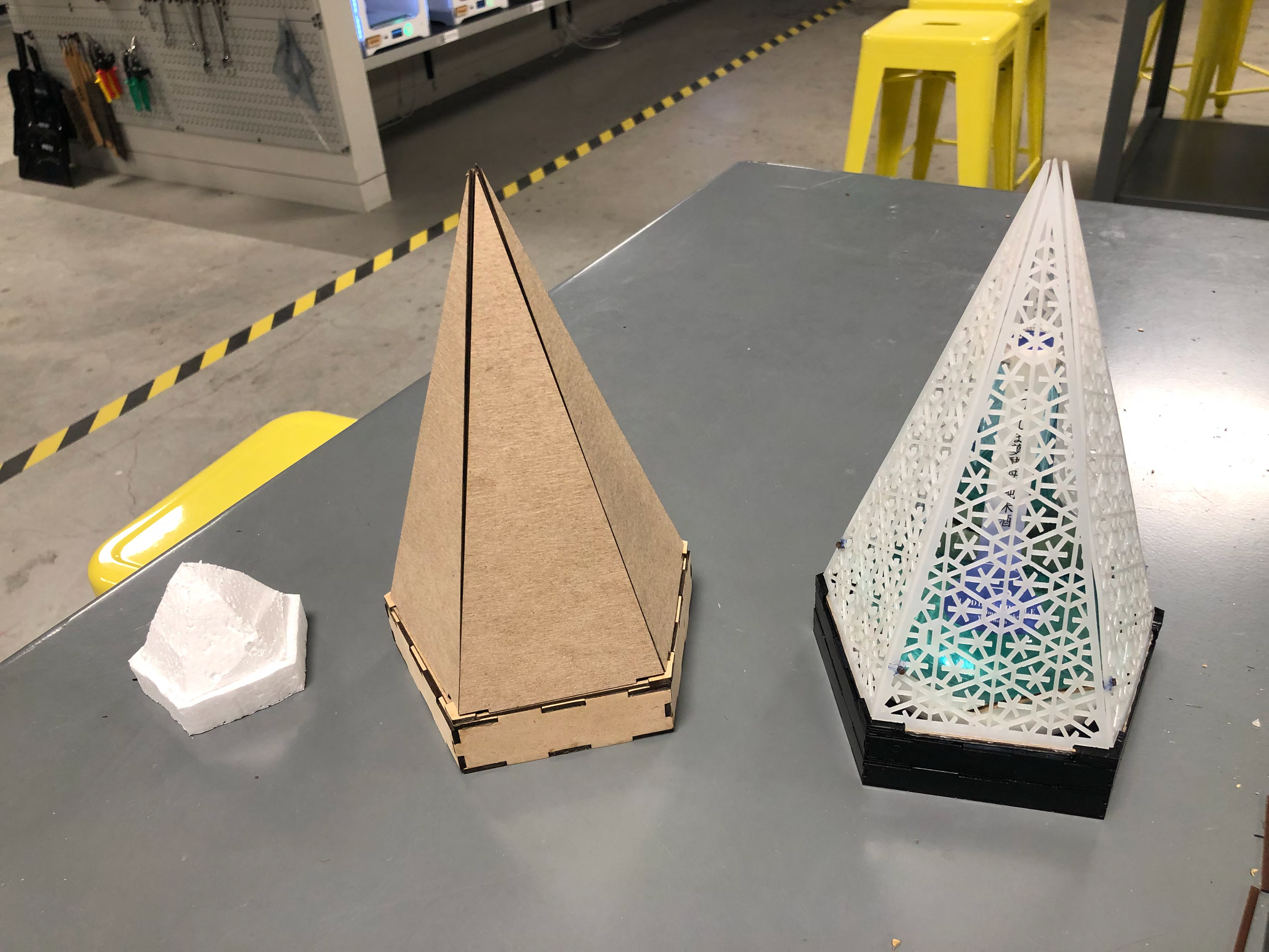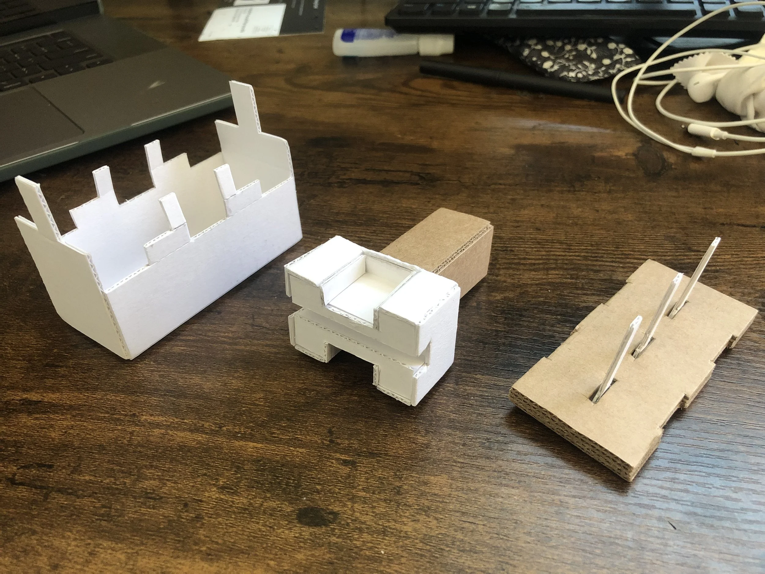 These are all the images I have of building the final sake packaging. I began with a small massing model made from sterile foam, then progressed to a cardboard model, and finally, an acrylic model.