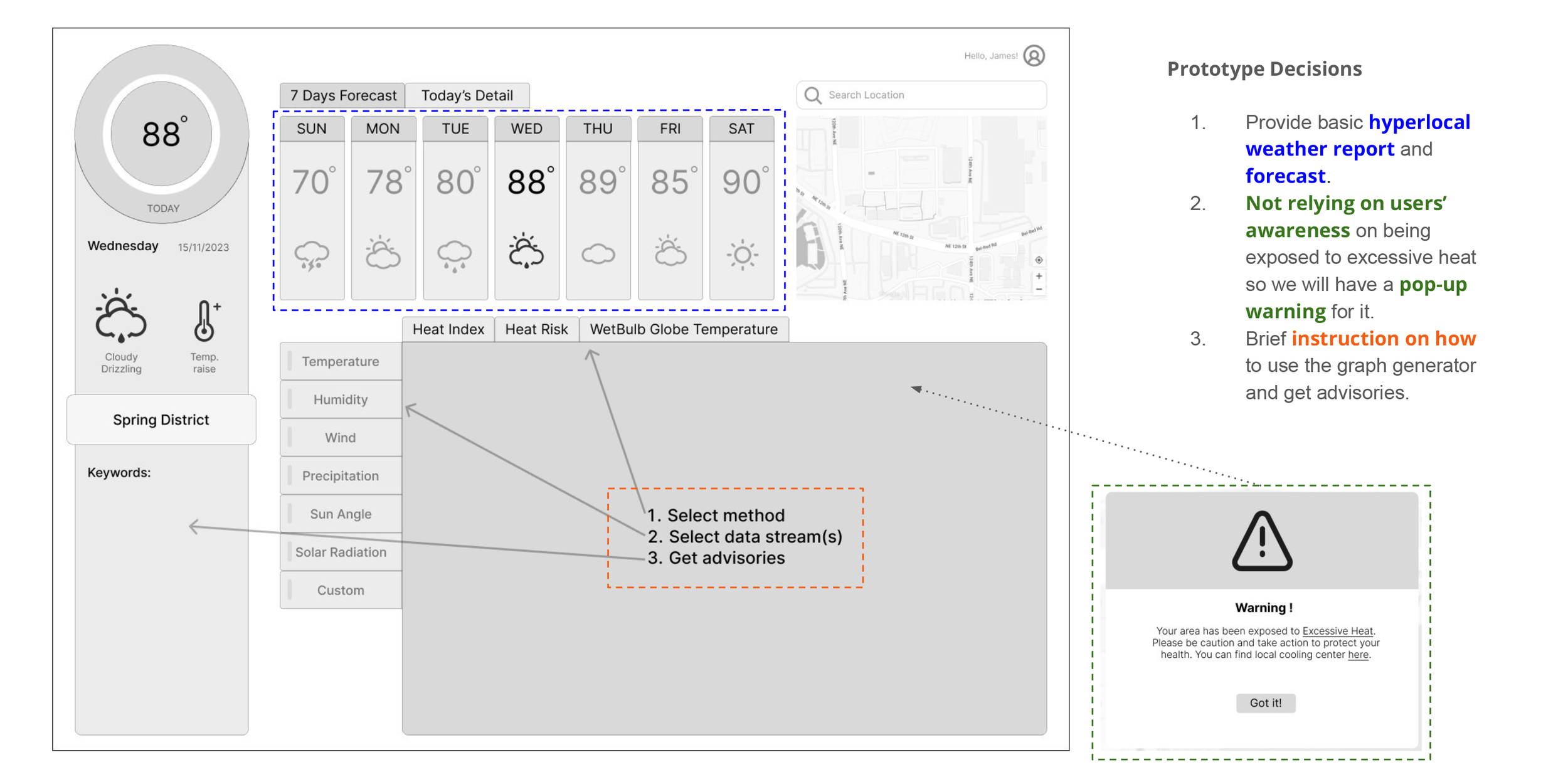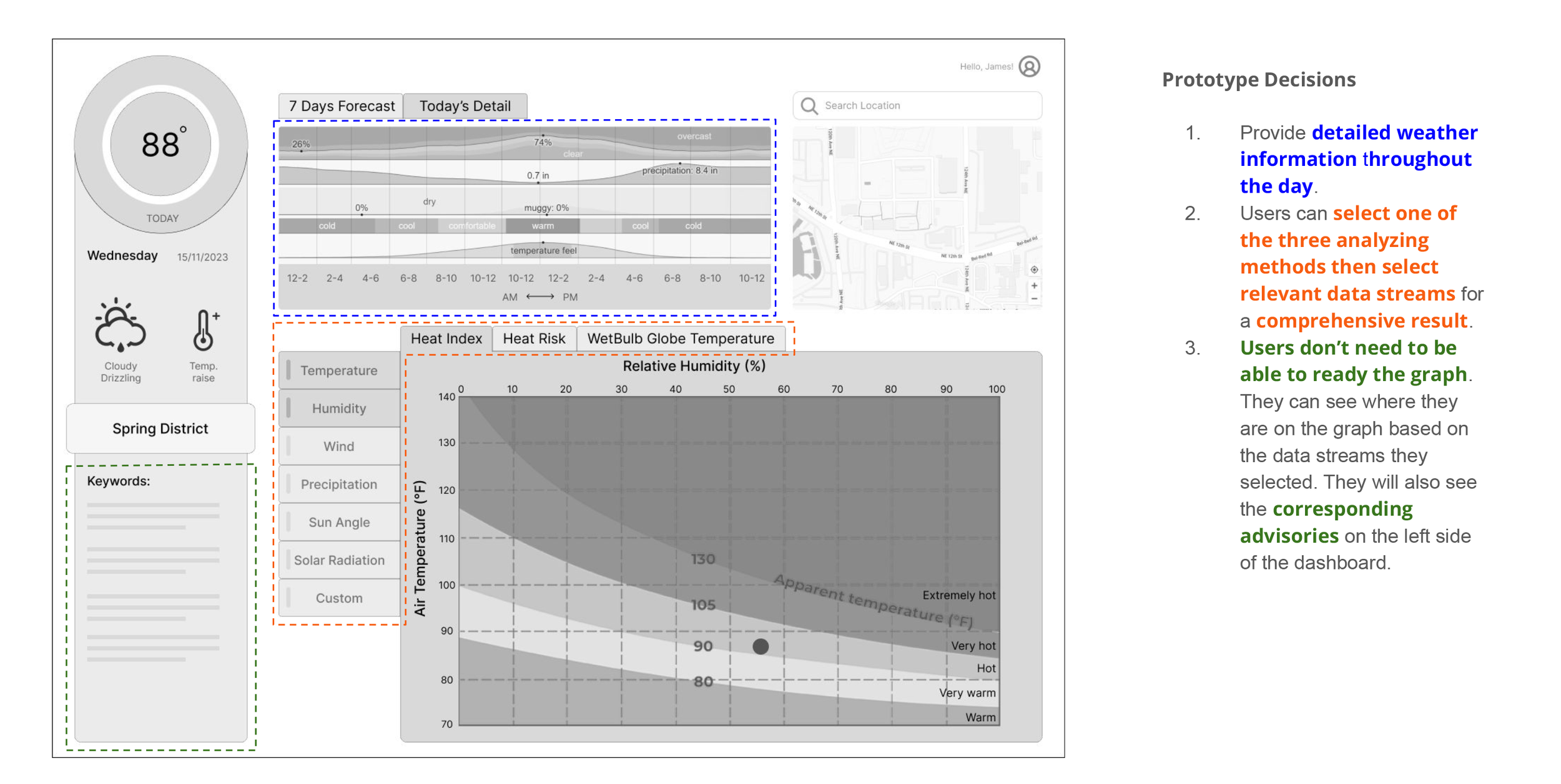 The current solutions, such as the heat-related EMR dashboard and Heat Safety Tool App, are primarily data-driven but lack a clear visual hierarchy and flexibility for user customization. Users are not provided with the means to quickly access and focus on the specific information that is most relevant to them.